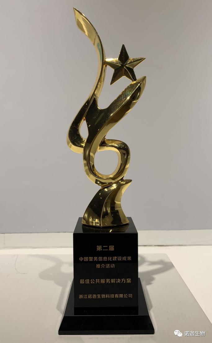 2019年5月10日,第二屆中國警務信息化建設成果推介活動研討會在北京召開,本次研討會以“新時代 新動能 新警務”為主題,由人民公安報社指導、中國警察網主辦,諾迦生物自主研發的毛發毒品快速檢測項目獲“最佳公共服務解決方案”稱號。