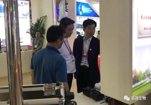 杭州市副市長胡偉(中)、杭州市投資促進局局長王翀(右)蒞臨諾迦生物展臺